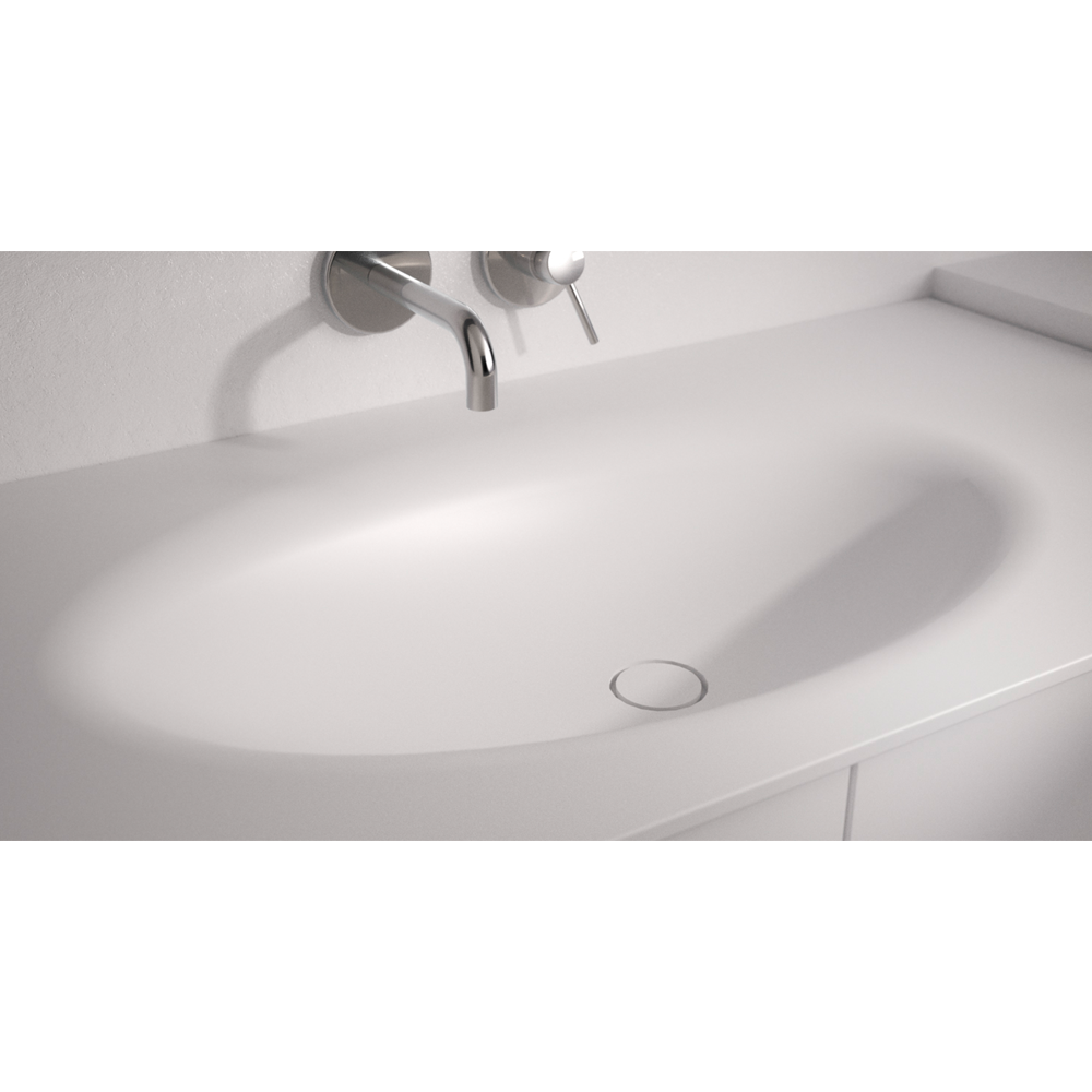 OLIVE 900 - Designwaschtisch mit fugenlos eingeformten Waschbecken aus Mineralwerkstoff.